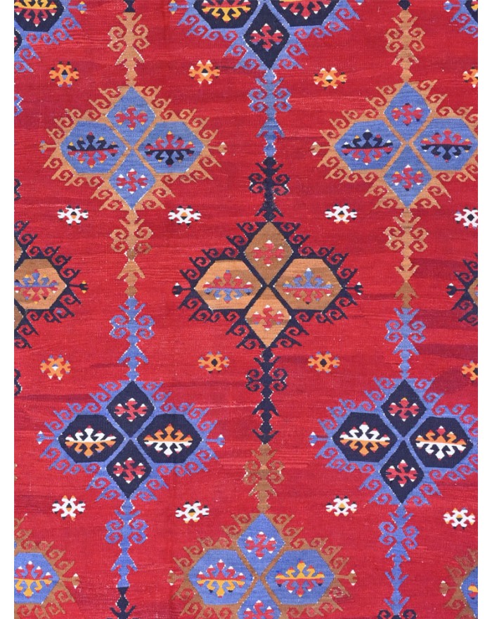 This kilim is beautifully woven. Its pattern is very typical of this region, but there are some unusual small cartouches on the side. The colors are brighter than those generally used.