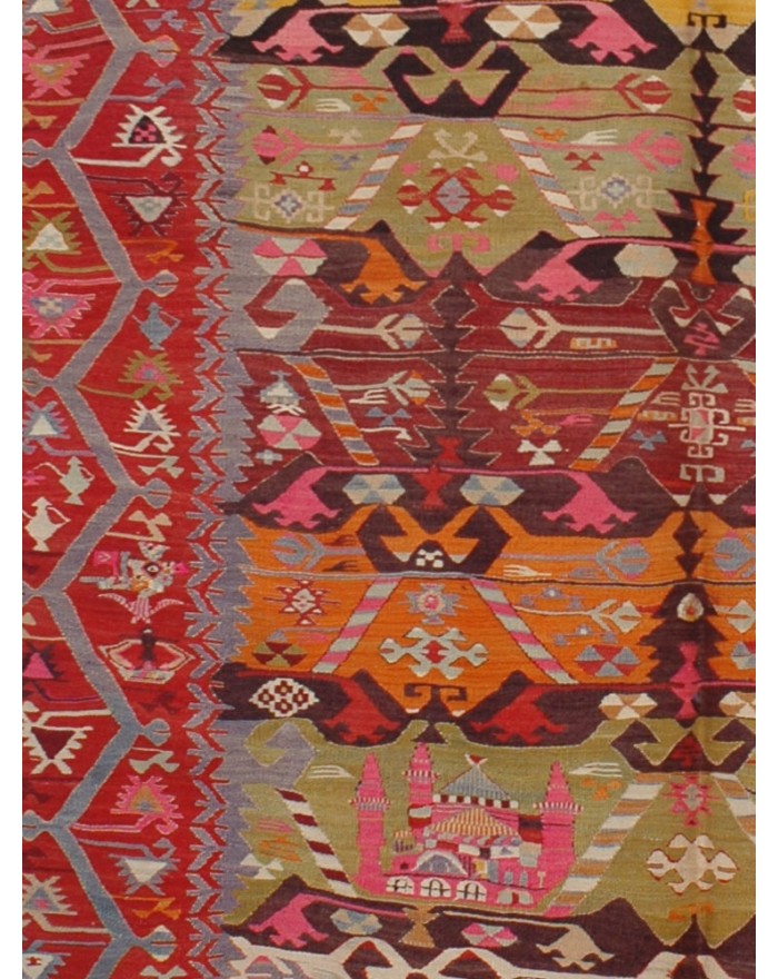 Kilim from the Emirdag region are woven with fine wools and are tightly woven.