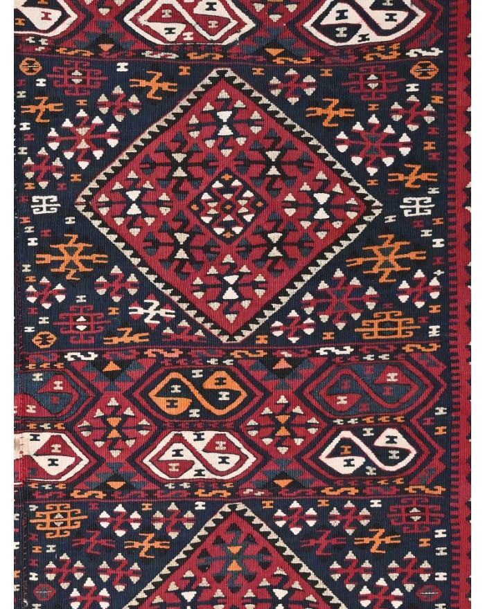 This kilim is very characteristic of this region, with its precise motifs and contrasting colors - woven in 2 parts