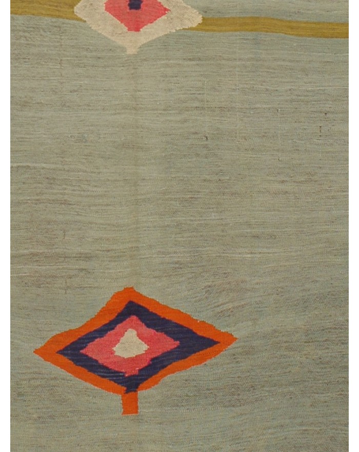 Ce kilim est d'une grande modernité. Son motif et ses couleurs sont tout à fait inhabituels.