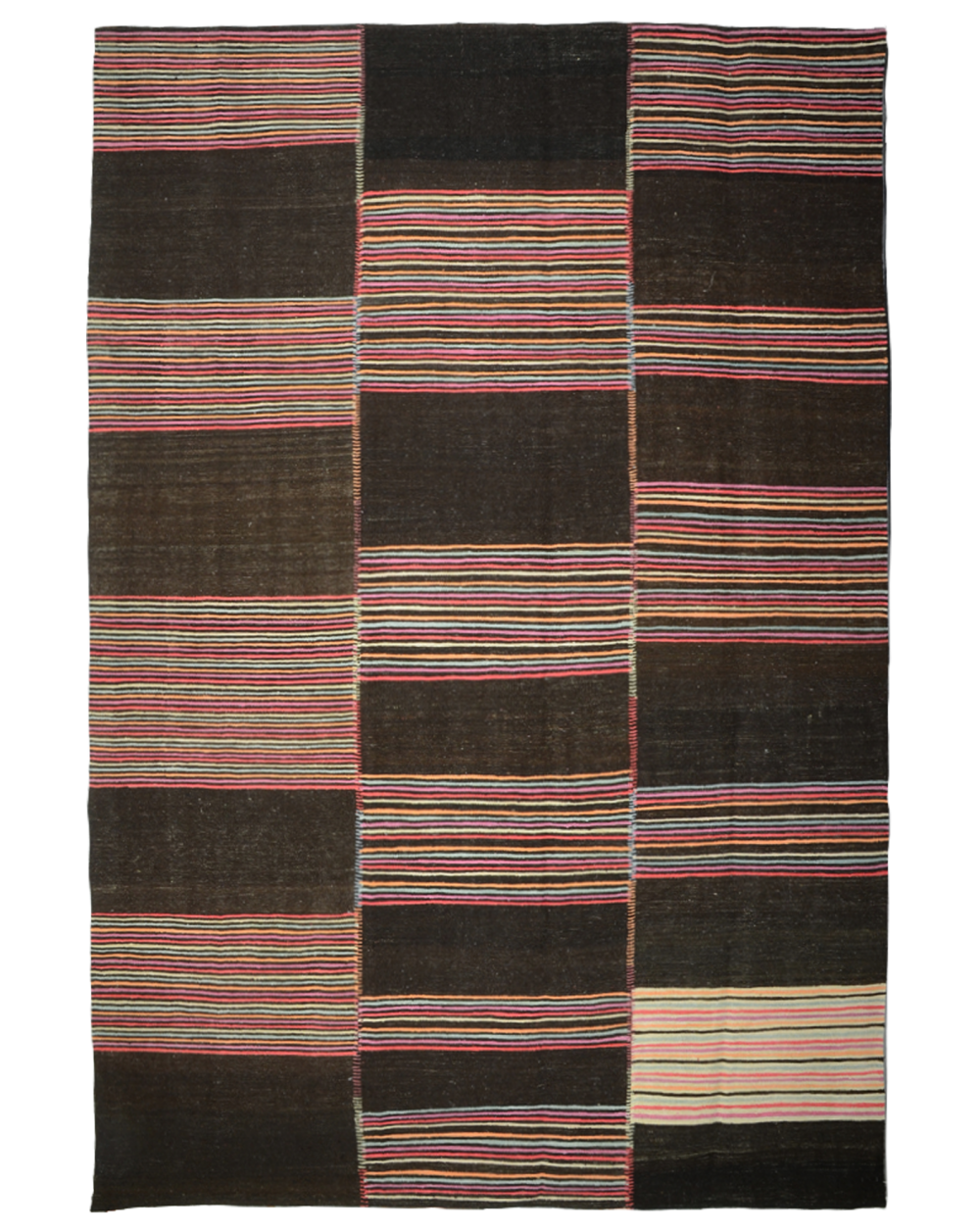 Kilim neuf, tissé main en plusieurs parties avec un mélange de laines de mouton et laines de chèvre filées main et de chanvre.